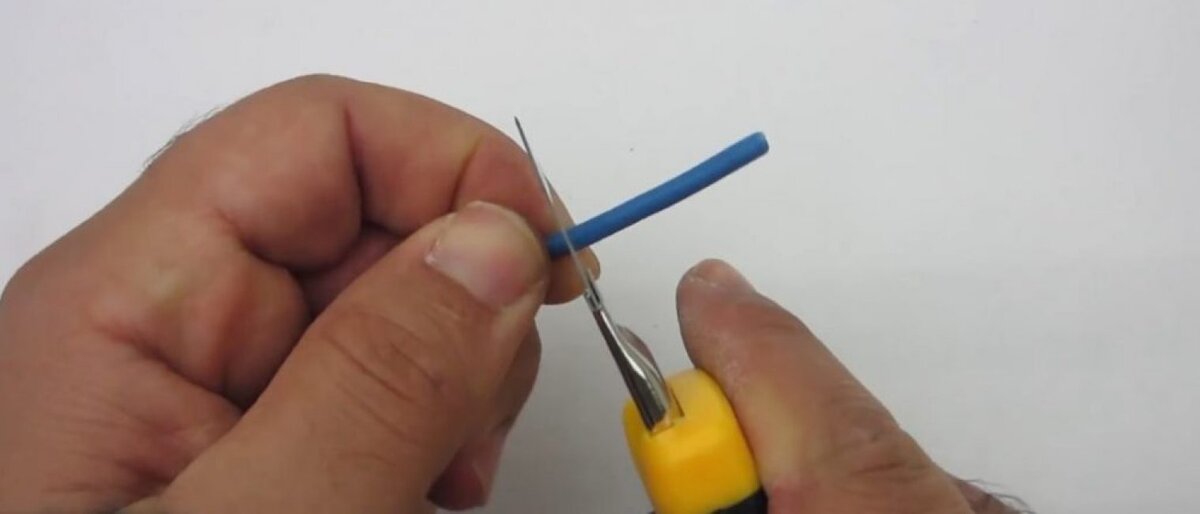 Но что делать когда под рукой нет специальных соединителей или паяльника, а вам нужно срочно или временно соединить провода? Давайте попробуем сделать надёжную скрутку и проверить её. Подробно и с фотографиями Надрезаем оболочку провода 1 С помощью ножа снимаем около 2-3см (в зависимости от сечения) изолирующей оплётки провода. Стараемся не повредить ни одной жилы. Для этого по кругу надрезаем внешнюю оболочку, — даже если