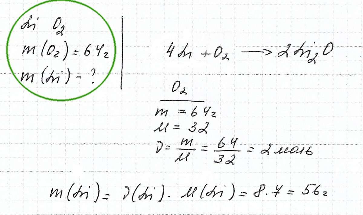 Вычислите массу лития, вступившего в реакцию с 64 г кислорода