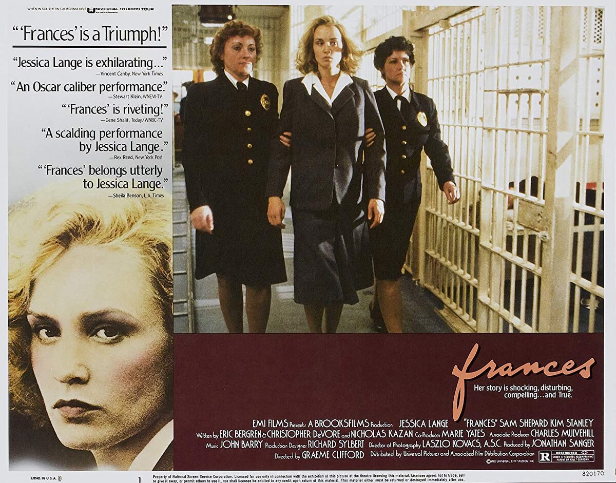 «Фрэнсис» - история про постепенное уничтожение талантливой женщины. Конечно, я считаю, что режиссеру нужно было снимать это жестче (вроде «Камиллы Клодель 1915» Брюно Дюмона), но Джессика Лэнг отлично справилась со своей ролью. После просмотра даже захотелось посмотреть старые голливудские фильмы с Фрэнсис Фармер. Надеюсь, что вам тоже понравится этот фильм.