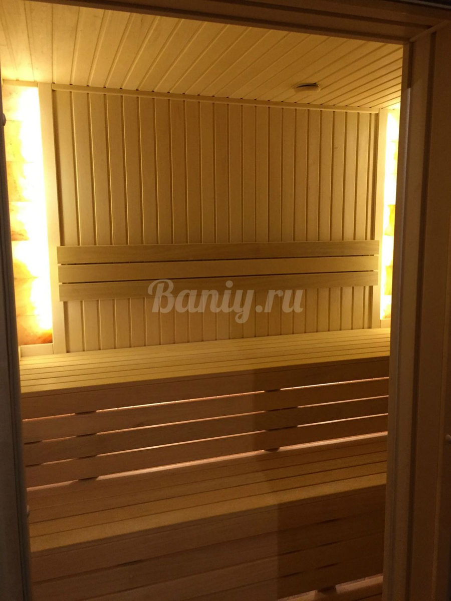 Была выполнена отделка финской сауны в Раменском в Августе 2019 года. Стены и потолок отделаны вагонкой из липы. Полок сделан из африканского дерева Абаш. Установлена электрическая печь Премьера в облицовке из талькохлорита. Углы сделаны из Гималайской соли со светодиодной подсветкой. Возле печи размещено панно, отделанное плиткой из талькохлорита в стиле рваный камень. Установлена стеклянная дверь бронзового цвета. Освещение сделано из светодиодной ленты. Посмотреть все наши работы можно на сайте: С удовольствием поможем осуществить вам мечту и качественно выполнить работы по отделке сауны и бани. Ваши, baniy.ru