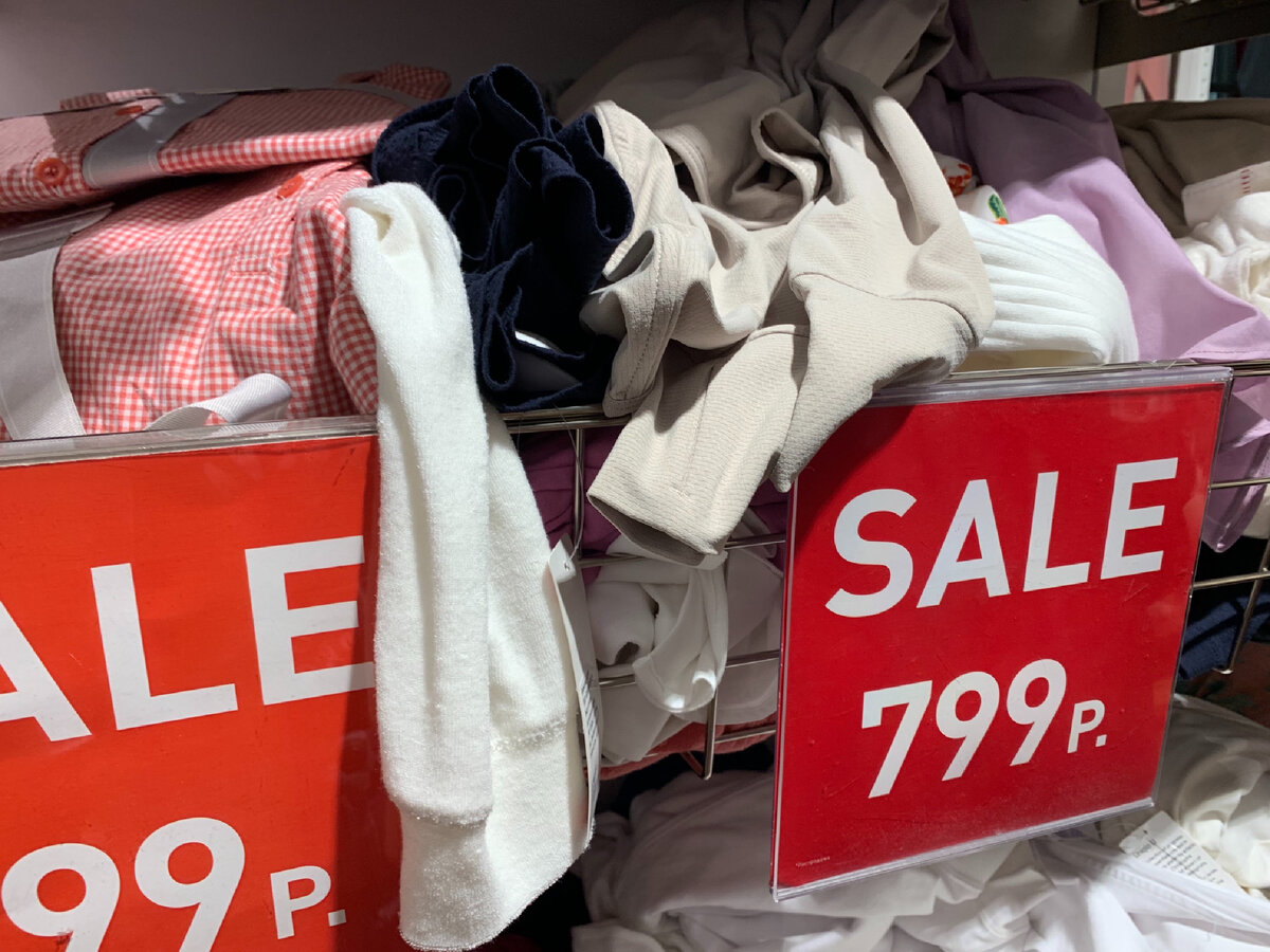 Начну (в очередной раз) с того, что в целом марка Uniqlo мне нравится, и у меня много хороших вещей оттуда. Какие-то - и вовсе не имеют конкурентов. Но далеко не все так радужно, и это касается не только плохого качества некоторых видов одежды. Есть еще одна вещь, которая может оставить очень неприятные впечатления именно от самих магазинов. И я говорю о распродажах. Классическая распродажа в Юникло выглядит примерно так: Я ни одного раза не видела в этих корзинках порядка. Пользоваться ими - ужасно неудобно и неприятно. Такое ощущение, что находишься на самом дешевом рынке из возможных. Намешаны вещи самых несовместимых категорий, без какого-либо распределения по размеру. В мужских вещах - такая же история, но есть слабый намёк на то, что когда-то все было сложено аккуратно. Непонятно, по какой именно причине, но часть распродажных вещей заслуживает нормального хранения и представления. И покупают эти вещи охотнее. За все то время, что я посещаю Uniqlo (чаще всего это магазин в "Галер