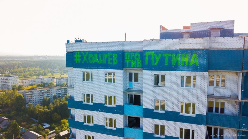 Состоялась очередная акция протеста в защиту обманутых дольщиков Королёва. После повешенного дольщика на эстакаде на Ярославском шоссе обманутые люди продолжают идти на крайние меры. И в субботу ночью на долгострое на Тарасовской улице (ЖК “Тарасовская, 2”), который “замер” на 11 лет, появилось очередное “предупреждение” от королёвцев Главе города Александру Ходыреву – на фасаде дома размещена яркая надпись “ДОМ ПРИЗРАК 11 ЛЕТ” с хэштегом #ХодыревПротивПутина КоролёвМедиа.Ру – 24 авг. Десятки тысяч автомобилистов на Ярославском шоссе сегодня уже стали свидетелями (а сколько еще станут, учитывая, что сегодня выходной и дачники активно едут за город) яркой, во всех смыслах, акции протеста королёвских дольщиков. Ночью (скорее всего, именно сегодня) неизвестные разместили прямо на фасаде дома яркой краской надпись “ДОМ ПРИЗРАК 11 ЛЕТ”. Фраза нанесены по верхней кромке фасада 25-этажного долгостроя – той части дома, которая выходит и на развязку Тарасовской улицы и Ярославского шоссе и в
