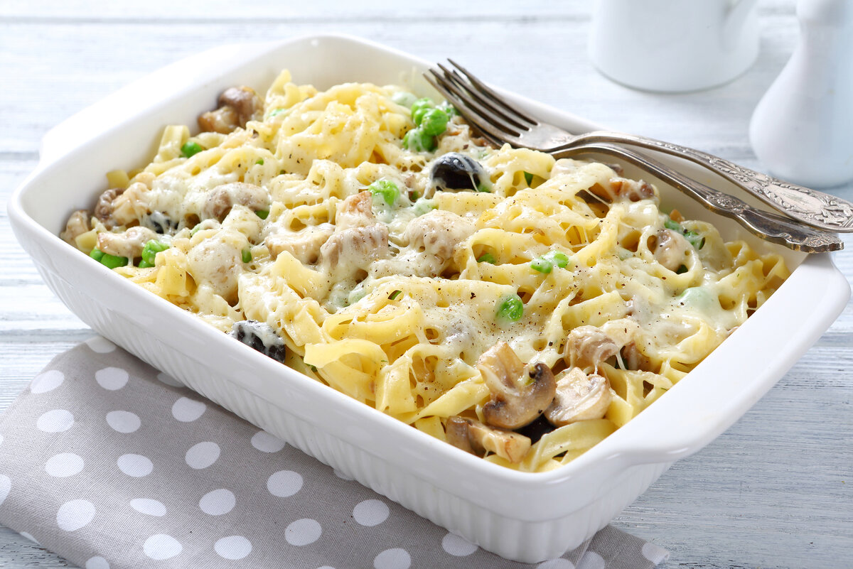 на макароны залить готовой смесью , выпекать в духовке при 170 градусах 30-40 мин