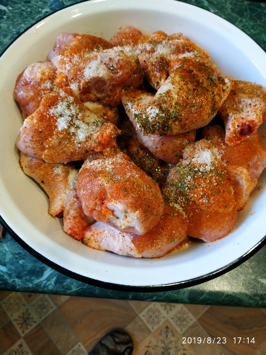 Сегодня будем готовить куриные ножки на гриле.Итак начнем.Я готовил порцию на четырех человек.Купил на местном рынке три килограмма подготовленных куриных ножек,промыл и начал подготовку к маринованию.Что мне потребовалось: три килограмма куриных ножек,чеснок - 4 зубчика,соль брал крупную,две с половиной столовые ложки,перец молотый ,приправа для курицы с ближайшего супермаркета,соевый соус три столовые ложки и немного растительного масла.Также добавил немного сушеных кавказских трав. Масло добавляем для того чтобы наши ножки не пригорели к решетке гриль. В промытые куриные ножки добавляю приправу,соль и перец.мелко нарезаю зубчики чеснока,вливаю соевый соус и масло.Все это дело тщательно перемешиваем и ставим в холодильник на четыре часа. Дрова для шашлыка беру только березовые.Угли на них очень хорошо отдают жар . При жарке также использую оставшийся соус от маринования,им я поливаю мясо при жарке.Оно получается очень сочным. Ну и собственно конечный результат.Вкус очень насыщенный