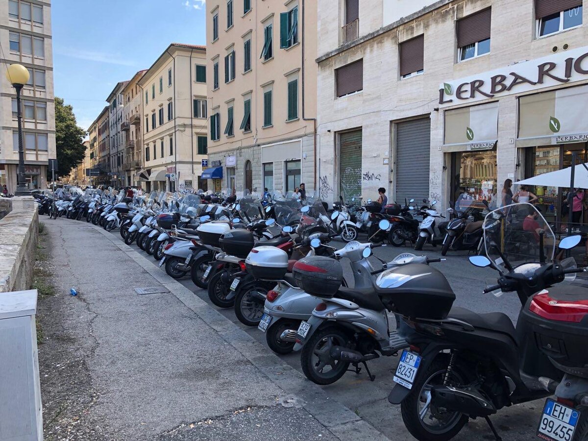 Наш недавний отпуск мы провели в Италии, а, если быть ещё точнее, то в чудесном городе Ливорно. И мне бы хотелось поделиться с вами своими впечатлениями от этого города. Ливорно - это портовый город на западном побережье Тосканы. Население города составляет порядка 160 тысяч человек. И почему же мы выбрали именно этот город для своего отпуска? На этот вопрос я мог бы просто ответить - "Потому что рядом пляж!" и закончить на этом написание данной статьи. Но мне хочется передать вам немного итальянской атмосферы. Поэтому включайте музыку, смотрите фото, читайте, а, если вам всё понравится, то можете посмотреть мой видеоблог в конце статьи. Самый популярный вид передвижения по городу - это мопеды и мотороллеры. Их здесь просто нное количество. И в этом нет ничего удивительного. Что касается проезда на общественном транспорте, то мы передвигались всё время на автобусах и поездах. К слову, проезд по городу в один конец на автобусе стоит 2,50 евро. Если вы собрались в дальнее путешествие