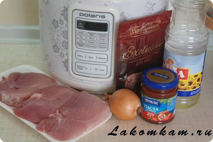 Приготовление гуляша из свинины в мультиварке. Берём необходимый набор продуктов.