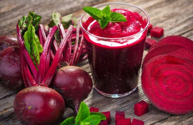 Сок свеклы повышает гемоглобин и вообще способствует улучшению состава крови. Употребление чистого свекольного сока может вызвать слишком активное очистительное действие. Принимая цельный свекольный сок, имеющий ярко выраженный слабительный эффект, можно, особенно на первых порах, почувствовать небольшое головокружение или легкую тошноту. Этого не произойдет, если употреблять его в смеси с другими соками – чаще всего с морковным, который будет составлять основу морковно-свекольного «коктейля» (свыше 50 %). По мере привыкания организма к свекольному соку пропорции можно изменять, увеличивая его количество в смеси. Ежедневная норма потребления свекольного сока – 1–1,5 стакана 2 раза в день. Морковно-свекольная соковая смесь обеспечивает также организм достаточным количеством фосфора и серы. Витамин А, которого довольно много в этой смеси, является естественным стимулятором роста красных кровяных телец и вообще улучшает состав крови. Особенно сок свеклы полезен для женщин: им нужно пить м