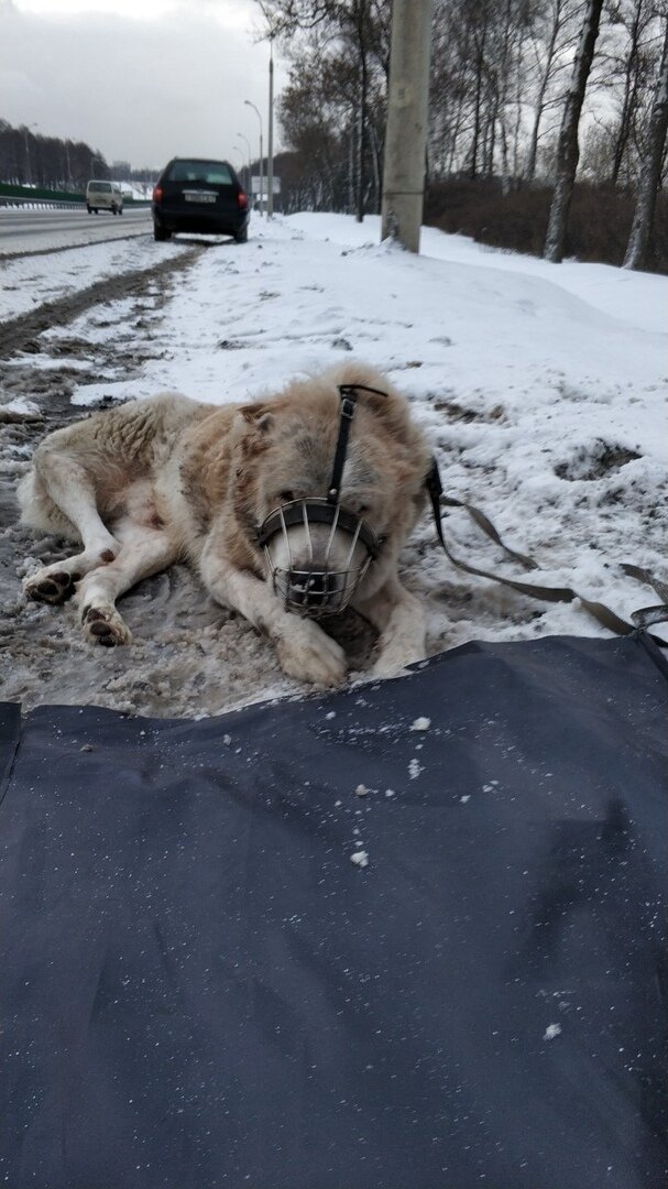 Крайне неудачное время он выбрал для прогулки и вышел прямо под машину. Так и лежал бы большой грустный пёс на той дороге, не проезжай в это же время Человек с альтруистичной тягой к огромным псам не вовремя вышедшим погулять.