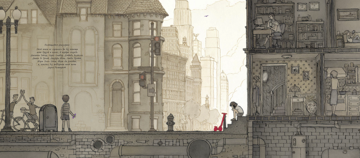 Компьютер он использовал лишь в самом начале процесса, когда моделировал общий вид пейзажей, а затем нарисовал всё руками, следуя любимым образцам – Морису Сендаку и Мерсеру Майеру. Чуть позже на основе иллюстраций он создал также анимированный трейлер к книге.