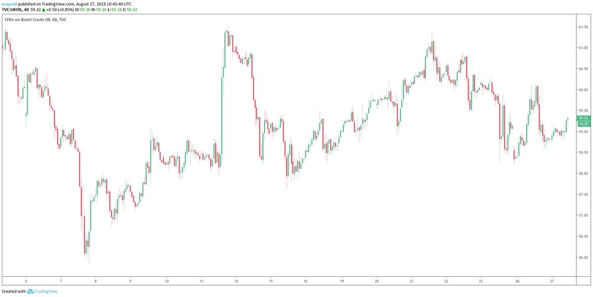 Еще один момент, на который никто не обращает внимание. Обычно любое обострение на Ближнем Востоке используется и участниками биржевых торгов [и аналитиками для объяснения] наращивания покупок в нефти, тем самым вызывая резкий рост цен на последнюю. Так происходит практически всегда. Теперь посмотрим на ленту новостей по Ближнему Востоку за последние три дня — с 25 по 27 августа: Как отреагировала нефть? Никак: До настоящего момента не было никакого роста, стоим в узком боковике, у значений на которых закрылись еще в пятницу, 23 августа. У размышляющего человека сразу должен возникнуть вопрос, почему участники рынка не отреагировали на очередное обострение ситуации на Ближнем Востоке, которое грозится перерасти в полноценную войну с соответствующими рисками для транспортной системы, по которой нефть доставляется нефть. Как вы думаете, с чем связано такое необычное поведение цен на нефть? Ответы можно оставлять на странице оригинала данной записи на нашем новом сайте по ссылке https://