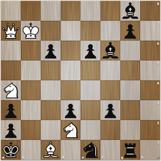 [FEN "6b1/QK4p1/2p1pb2/8/N7/p2p1p2/p2N4/k1B1n1r1 w - -"]