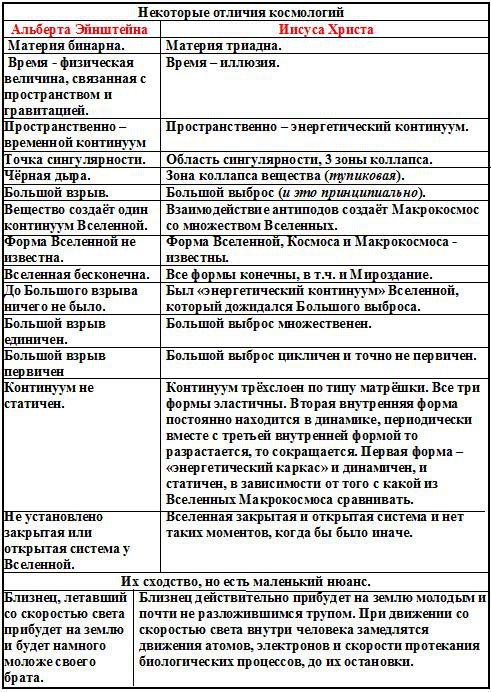 При таких отличиях А. Эйнштейн точно не признал бы результаты нашей дешифровки. А кто в принципе мог бы признать результаты дешифровки, хотя бы в какой-то её части? Мусульманский мудрец Авиценна, в части иллюзии времени? Еврейские мудрецы Филон Александрийский и Иосиф Флавий, пытавшиеся в своё время доказать космичность меноры, но им, ни тогда и не сейчас, никто не верит. Русский лингвист и математик Панин И.Н., установивший семеричность написания текстов библии, в части кратности нашего космоса именно семи? Американский учёный Ли Смолин, в части теории «Большого выброса» и возможно в «Области сингулярности»? Папа Римский Франциск, который высказался на тот счёт, что католическая церковь ничего против «Большого взрыва» не имеет? Пусть не впрямую, пусть косвенно, но он тем самым заочно признал и космологию Иисуса Христа, в которой теория «Большого выброса» является одним из «краеугольных камней».