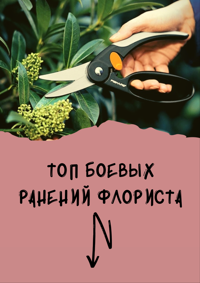 Опытные флористы подобны ветеранам вьетнамской войны – видали всякое. В их глазах периодически виднеется грусть, когда речь заходит про 8 марта или 1 сентября. Они просыпаются по ночам в холодном поту и кричат что-то в духе «Только не Freedom!», «Золотое сечение» и «Акция на 101 розу». Если уж мы проводим параллель между флористикой и полем военных действий, то давайте же узнаем Топ боевых ранений цветочных умелец. Секатор-убийца Наш верный товарищ в укорачивании стеблей способен навредить своему владельцу. Когда флорист впервые получает травму от секатора, более опытные коллеги поздравляют с боевым крещением. Не удивляйтесь, в спешке можно перепутать стебель и палец или даже почесать ногу острым концом, задумавшись о чем-то мирском. Травмы от секатора – частое явление. Именно по этой причине у флориста нет страха крови и всегда наготове перекись с бинтом. Химоза ядовитая Цветы, которые красуются на витрине, проделывают долгий путь из родных Эквадоров, Англий и прочих Кений. Разумеетс