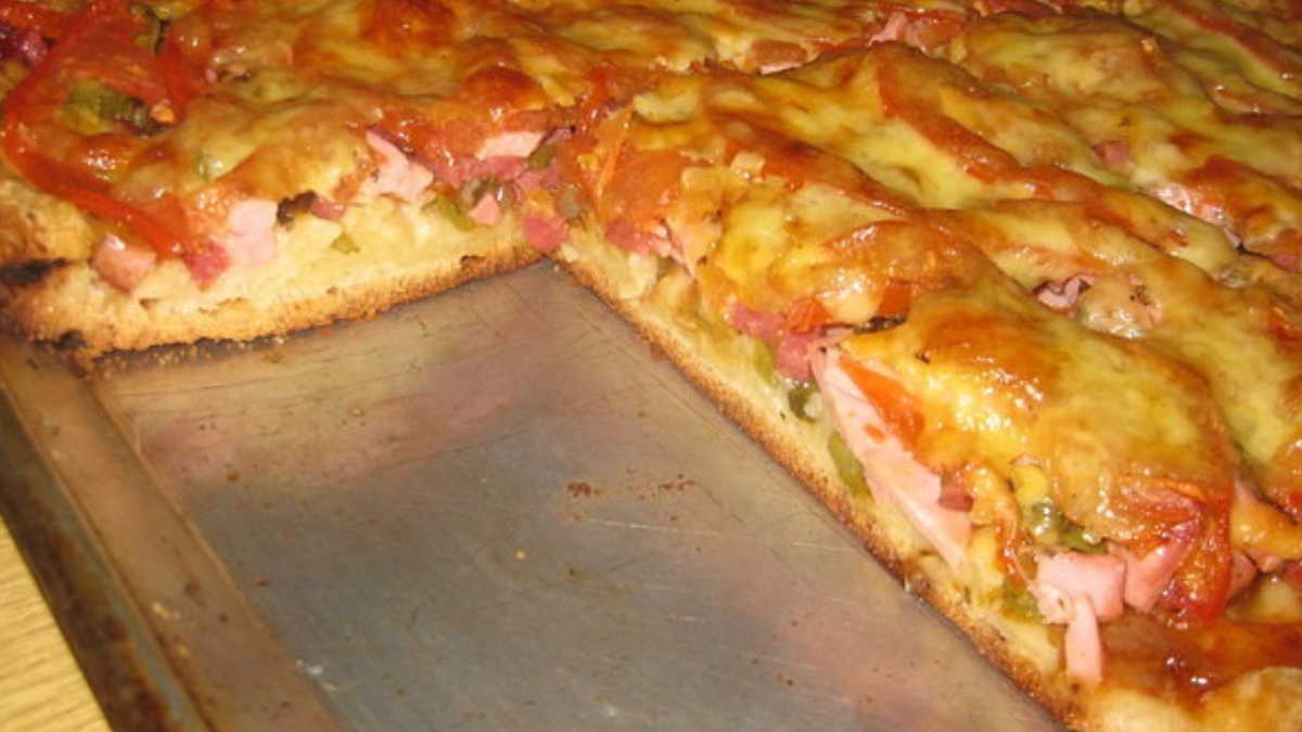 доброе утро читатели и сегодня мы с вами приготовим пиццу, не так уж и часто мы ее готовим, но иногда хочется скушать чего нибудь такого, и не будем медлить и начнём готовить, и так мы берём: помидор 1шт колбаса 0,100 соль по вкусу сыр 0,150 сыр и колбасу можно использовать любую, как обычно на ваш вкус мука 0,200 майонез 0,120 яйцо 3шт берем емкость какая вам больше по душе и взбиваем яйцо с солью, если у вас есть блендер можно воспользоваться им, затем добавляем майонез и тщательно перемешиваем. Затем частями добавляем муку ( частями почему, что бы легче было перемешивать и было меньше комков, хотя их не должно быть вообще ), и перемешиваем до однородной массы, затем берём форму или противень не с низкими краями и заливаем в неё наше тесто, равномерно распределяя по всей поверхности. Подготавливаем начинку, колбасу и помидоры режем произвольно, выкладываем на тесто, сыр трём на крупной тёрке и покрываем нашу пиццу. Затем выпекаем пиццу в разогретой духовке при температуре 190-195 гр