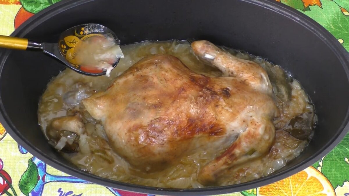 Рецепт приготовления курицы в луковом соусе в утятнице на плите. Канал Марина Жукова.