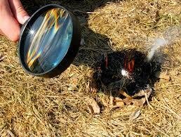 С помощью лупы, бинокля, очков можно сфокусировать солнечные лучи на трут и тем самым воспламенить его. Сфокусировав лучи на трут, линзу следует держать неподвижно. Для этого можно заранее приготовить какой-либо упор для руки.