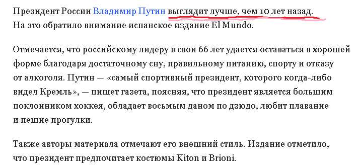 Гляньти на их...оне начали чото подозривать, но оне никада нидотумкают того, отчаво Светлейший молодеит а кот вам говорил что он буит молодеть, ибо почему ? Ибо кот так захотел, тута фсё очень проста, ибо кот любит Светлейшего , ибо кот загадал Светлейшего ещо тада, када яво на горизнти небыла, кот ришыл что нада охвицер КГБ и чтоб мог фсех тиха обдурить так, чтоб комарики носов не замочили...и потома бац ! - кату подарак на Новый - Светлейший пришол...потома многа чаво была и потома кот ришыл яво омолодить и я клипал вам про то, что так и буит ибо кот сказал, значит капец на том...ухаха А оне рассуждают, мол, он выглидит лучи чем ДЕСИТЬ ЛЕТАФ НАЗАД ИБО СПОРТАМ ЗАНИМАИЦЦА УХАХА кабута рания он вотку пил и валялся на дивани ухаха ой...он вообчето с юнасти им занимаицца но как ба он выглядел щас лучи чем десять летаф назад если и тада был спорт и щас...ой, обчим вы понили...нуничо...кот яво ещо лучи омолодит , ибо Светлейший сие король Артур нашей реальнасти, сие нада понимать, посему