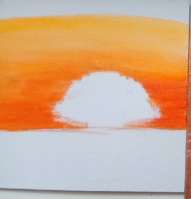 Всем привет! Меня зовут Екатерина, я художник-видеоблогер. Веду свой YouTube канал под названием "TessaArt" :) Сегодня я предлагаю нарисовать тему сафари, очень просто: У меня холст 20 на 20 сантиметров. Вы можете взять любой удобный размер. Зрительно делим лист на три части, в центральной рисуем солнце и дерево. Будем использовать оранжевый, жёлтый, коричневый цвета. Оранжевым цветом нарисуем намеки на облака. Не делаем ровный контур, так как мы рисуем довольно жаркий африканский пейзаж. Далее коричневым цветом с левой стороны рисуем дерево и «волнистую» землю. Я нарисовала на обычном листе А4 контур слона (Вы можете распечатать его, либо найти в интернете другой контур животного или предмета). Вырезать, прикрепить скотчем к холсту. Потом берем черную краску и закрашиваем все вокруг нашего трафарета. Немного ждем чтобы краска подсохла снимаем бумагу. Аккуратно закрашиваем участки, которые были закрыты скотчем. Такая интересная картина у нас получилась. Надеюсь Вам понравилос