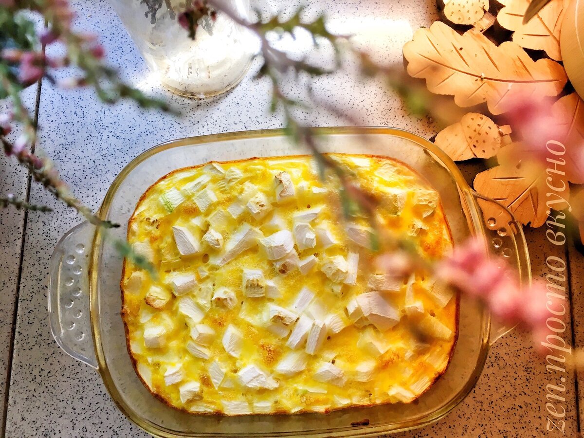 Когда нужно что-то быстро приготовить на завтрак на помощь приходит омлет. И вопрос что приготовить на завтрак отпадает сам собой, тем более яица и молоко всегда есть в холодильнике. Омлет во многих семьях с утра на столе, но обычно его готовят на сковороде, а мы сегодня приготовим в духовке. На плите приготовить получается быстрее, а в духовке немного дольше, но он меняет структуру и становиться пышнее и выглядит красиво. Омлет из духовки можно есть и холодным. А вот приготовленный на сковороде остывший омлет уже потеряет свой вкус. Это простой рецепт, в начинке будем использовать только кабачки. Вы же можете пофантазировать и добавить сладкий перец, лук и морковь, зелень, сыр, помидоры. Когда будете класть помидоры в омлет посыпьте их немного сахаром, это улучшить вкус блюда, так как томаты в тепловой обработке дают кислинку. Рецепт омлета с кабачком с фото пошагово У меня получилось много кабачков и они оказались на поверхности. Но это не помешало им хорошо пропечься и не