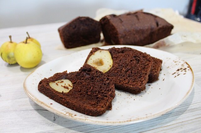 Мне недавно посчастливилось быть обладательницей 3 ящиков садовой груши, спасибо маме. Поэтому я активно эту грушу готовлю) И вот сегодня решила поделиться с Вами рецептом шоколадного кекса с грушей. Очень пряный, с горчинкой шоколада и нежной грушей внутри. Если у Вас магазинная или груша больше чем у меня, это даже лучше, такая груша, очень красиво выглядывает из кекса, и гораздо симпатичнее смотрится в разрезе. Ингредиенты: Масло сливочное (мягкое) - 180 г. Яйца - 3 шт. Сахар - 180 г. Ванильный сахар - 1 ч.л. Какао - 30 г. Корица - 1 ч.л. Разрыхлитель - 10 г. Соль - щепотка Мука -150 г. Груша – 3 -4 шт. (больших) Как приготовить: Масло комнатной температуры соединяем с сахаром и ванильным сахаром. Перемешиваем венчиком. Теперь по одному вводим яйца, только когда одно яйцо вмешалось полностью, разбиваем следующее. В муку добавляем какао, корицу, разрыхлитель и перемешиваем. Мучную смесь просеиваем в яичную, добавляем соль и хорошо перемешиваем. Тесто по консистенции должно получит