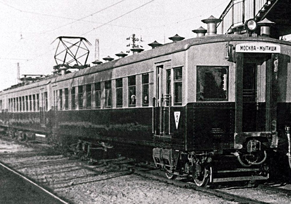 3 августа 1929 года отправился в первый рейс электропоезд Москва — Мытищи. Он был первым не только в Московском регионе, но и вообще на территории России. Раньше поезда начали курсировать в польском городе Лодзь, а вот от Москвы стали распространяться уже по всей стране. Электропоезд отправлялся от Северного вокзала — сейчас он Ярославский. Новенький дощатый перрон, три элегантных вагона: до окон — багровые, до крыши — светло-серые, а крыша — из тёмной парусины. Внутри стояли светлые деревянные лавки, стены были отделаны жёлтым английским линкрустом. Такой ещё до сих пор можно встретить в самых старых или реконструированных ретро-вагонах московского метро. Пантограф (устройство, передающее электроэнергию от проводов мотору) был тёмно-красным и располагался на среднем вагоне — тот был моторным. Первые десять лет, до Великой Отечественной войны, электропоезда делали только в Мытищах. Потом — в Риге, уже модифицированные, двухсистемные. Но это уже другая история. А в 1929 году первые