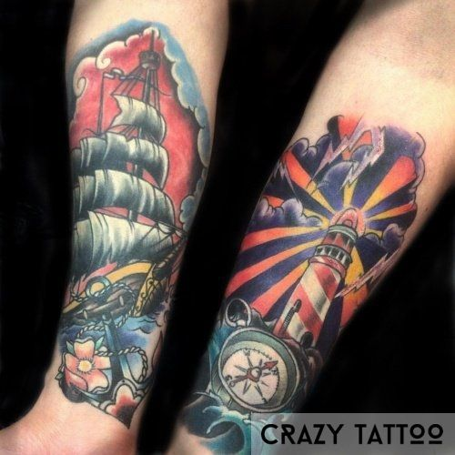 Корабль — один из самых романтических образов. Свобода, ветер в парусах, любовь, океан. Поводов сделать татуировку с ним — море.