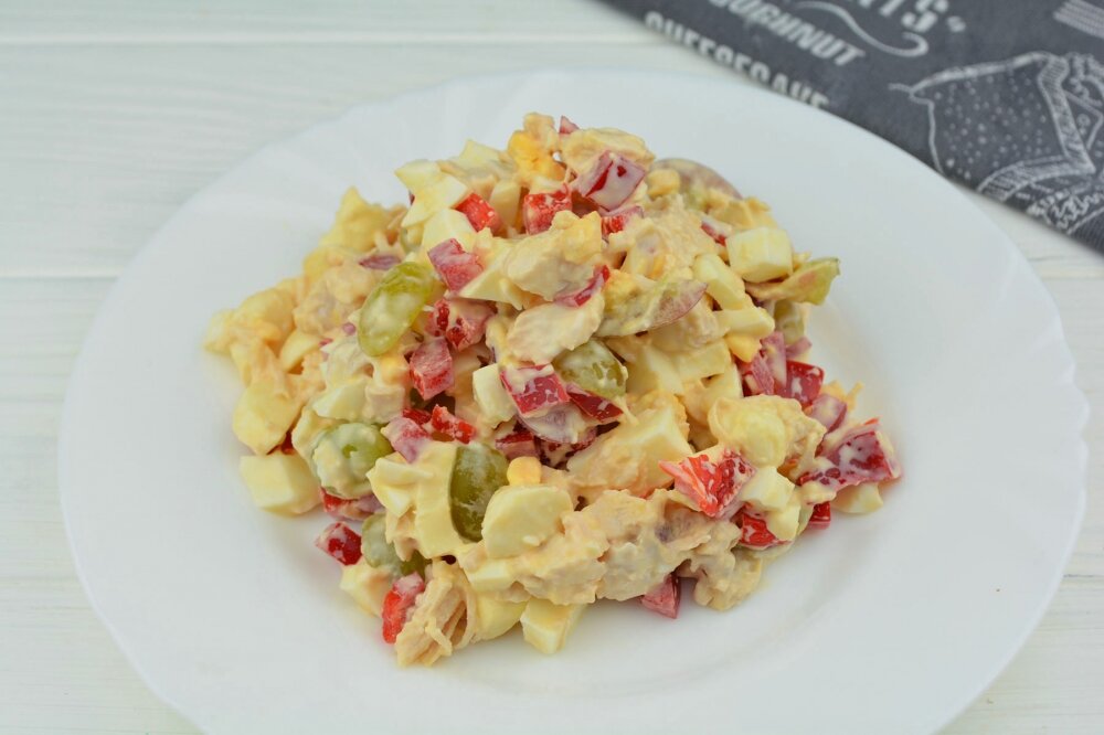 Салат из курицы с виноградом - интересное сочетание вкусов, которое обязательно понравится Вам и Вашим домашним, стоит только раз приготовить. 1. Подготавливаем ингредиенты. 2. Нарезаем отваренное в подсоленной воде куриное филе. 3. Нарезаем отваренные яйца. 4. Порезать моцареллу (у меня моцарелла мини). Другие популярные статьи на нашем канале: Вкуснейший салат "Парамониха" на зиму Гречка по-новому: ее полюбят даже дети! 5. Нарезать сладкий перец. 6. Смешиваем в миске и добавляем нарезанный виноград. Конечно-же кишмиш подойдет лучше всего. 7. По вкусу добавляем майонез или йогурт. 8. Тщательно перемешиваем салат и подаем к столу! Приятного аппетита - салат из курицы с виноградом готов! Ингредиенты Понравился рецепт? Поставь палец вверх!
