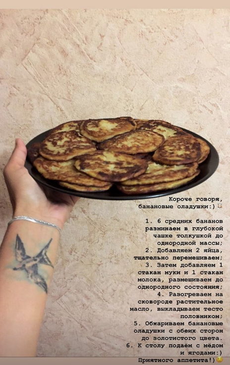 Добрый день, дорогой друг! Мы решили, что тема оладушек из предыдущего поста (https://zen.yandex.ru/media/id/5d66794b6f5f6f00ad6daf52/koroche-govoria-kapustnye-oladushki-5d6fcfcde4f39f00afaae344) раскрыта не полностью, поэтому сегодня на завтрак приготовим банановые оладушки. Среднее время приготовления - 45 минут. Нам потребуется: 1. Спелые бананы; 2. Куриные яйца; 3. Пшеничная мука; 4. Молоко; 5. Оливковое/растительное масло, мёд, ягоды. 1. 6 средних бананов разминаем в глубокой чашке толкушкой до однородной массы; 2. Добавляем 2 яйца, тщательно перемешиваем; 3. Затем добавляем 1 стакан муки и 1 стакан молока, размешиваем до однородного состояния; 4. Разогреваем на сковороде растительное масло, выкладываем тесто половником; 5. Обжариваем банановые оладушки с обеих сторон до золотистого цвета; 6. К столу подаём с мёдом и ягодами. Приятного аппетита!) Короче говоря, ставьте лайки, подписывайтесь на мой канал:) В комментариях делитесь рецептами, буду рада Вашей активности