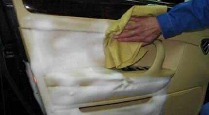Представляет собой пенный аэрозоль. После нанесения на поверхности образуется достаточно плотный пенный слой. Способ применения стандартный. Средство нужно распылить на пластиковую деталь, немного подождать и с помощью ветоши протереть грязь. Обратите внимание, что средство является ароматизированным, и в магазинах вы найдете этот очиститель с различными ароматами (яблоко, мята, ваниль, апельсин, персик).