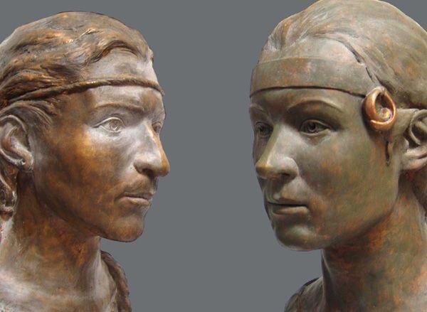 Реконструкции аркаимцев были выполнены по материалам захоронений в Большекараганском могильнике – некрополе, расположенном в 1 км от поселения Аркаим. Возраст мужчины – предположительно 23 года, возраст женщины – немногим больше. Девушка высокая – около 180 сантиметров, при том, что средний рост жителей Аркаима был около 170 сантиметров.