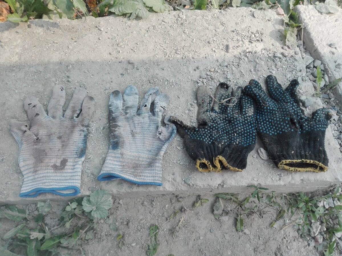 Рабочие перчатки – это неотъемлемый элемент при строительных работах. Это защита рук, можно смело взять что-то без риска получить занозы или царапины. Но рабочие перчатки – это расходный материал. Особенно при работе с камнем, они изнашиваются, рвутся: Перепробовал несколько видов перчаток. Во время строительства бани и при работе с деревом использовал х/б перчатки из толстой ткани с точечным нанесением искусственного каучука. В минусовые температуры одевал две пары. При работе с деревом в работе находятся долго. Но вот стоит перейти к камню, бетону, то ситуация меняется - рвутся. Так же при закручивании саморезов они тоже быстро рвутся на левой руке (у правши), на пальцах где придерживаешь саморез. И при работе с мокрыми поверхностями они не подойдут. Использую прорезиненные. Но и они буквально за неделю ежедневной работы с камнем приходят вот в такой вид: Особенно быстро они рвутся при затирании швов раствором с мелкими камнями. Там шпатель не поможет – только руками, вернее пальцем.