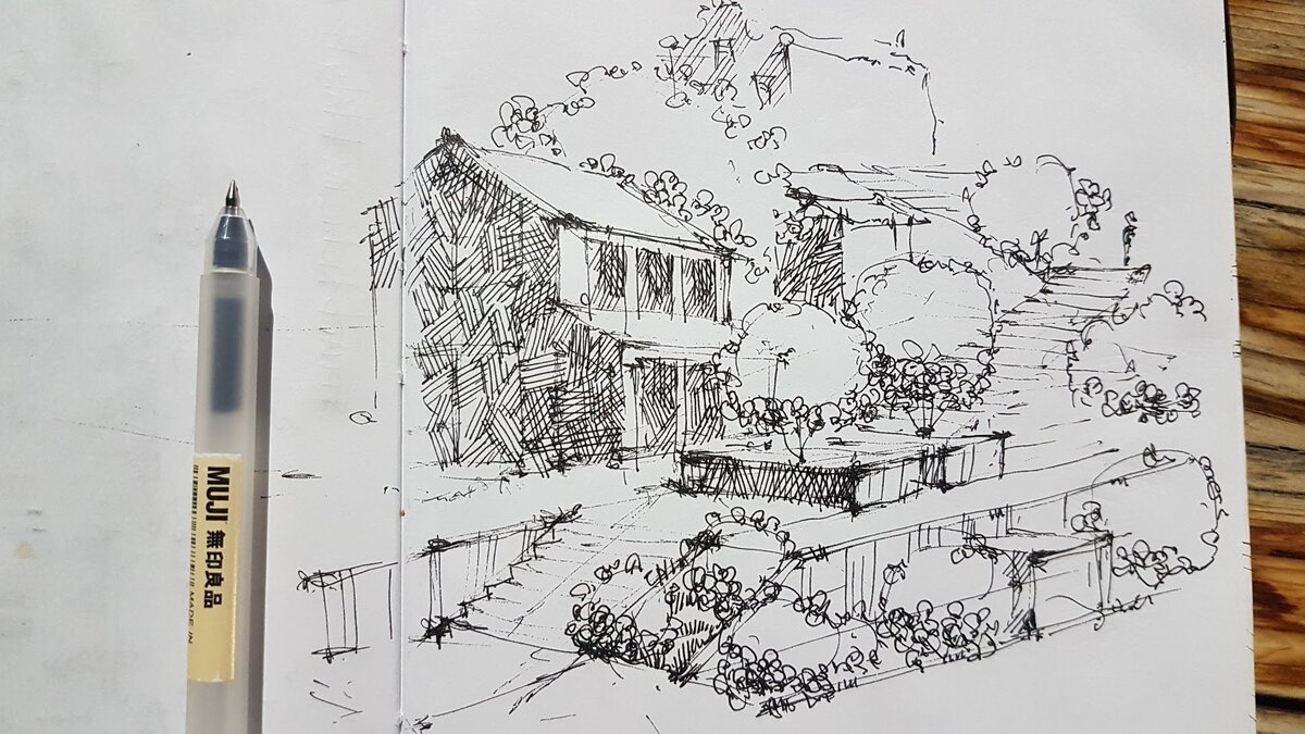 В пляжном кафе делаю набросок композиции из головы. Такое вот развлечение. Пространственный кроссворд. Италия, ПезароВидео :