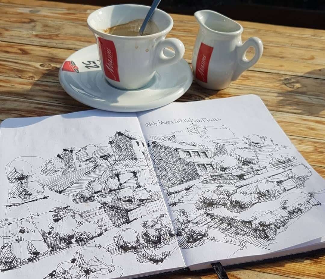 Стрим из Италии - графика, рисование ручкой в кафе на пляже