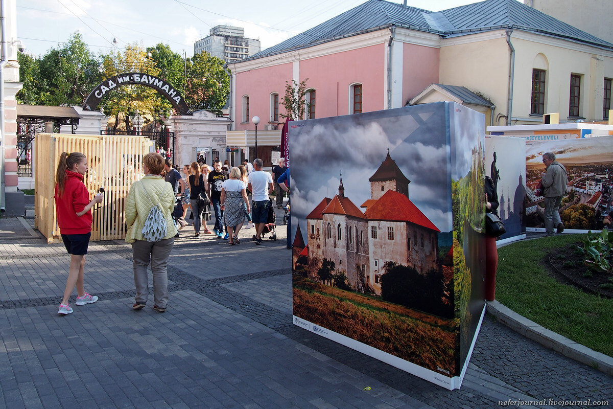 Дело было в саду имени Баумана. Вошла и сразу окунулась в атмосферу. На сцене выступал фольклорный ансамбль ROSÉNKA. Это было очень весело! Номер шуточный, песня длинная. Солистка пропевает, что надо делать. Музыканты играли стоя, сидя, лежа, задрав ногу, бегая по кругу, беззвучно. Поймала себя на том, что стою и улыбаюсь))
