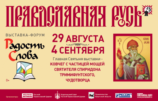 IX межрегиональная выставка-форум «Православная Русь» открылась в Иркутске 29 августа. Она будет работать до 4 сентября. Экспозиция объединит более 150 светских и церковных организаций из 10 стран мира: это монастыри, храмы, издательства, мастерские, а также светские организации, связанные своей деятельностью с Русской Православной Церковью. На выставке познакомиться с православным искусством, литературой, бытом, но и приобрести товары, привезенные экспонентами: церковная утварь, книги, иконы, художественные изделия, облачения и светская одежда, керамика, записи лекций, фильмов, духовной и классической музыки, сувениры и монастырские рукоделия. Для поклонения верующих из Николо-Перервинского монастыря г. Москвы на выставку-форум будет принесен ковчег с частицей мощей Святителя Спиридона епископа Тримифунтского.