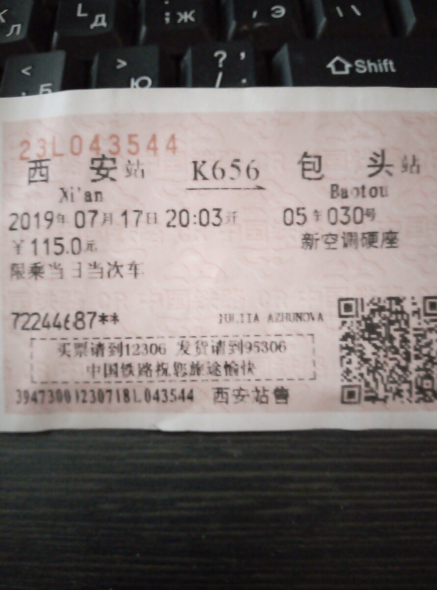 Билет на хард-сит Сиань-Баотоу стоит, как вы видите, 115 юаней (1100 руб). Других вариантов в день отъезда просто нет. Все дорогие купе и плацкарты выкупаются задолго до отъезда. Но ехать всего 9 часов, что это по сравнению с моим 24-часовым переходом Куньмин-Сиань. Баотоу - это самый крупный город провинции Внутренняя Монголия. Он отличается от других китайских городов так же, как отличаются друг от друга Куньмин и Сиань. Различия начинаются уже в дороге. Ночью проезжаем один город за другим. Освещенные окна многоэтажек пролетают, кажется, на расстоянии вытянутой руки от вагона. Редкое окно имеет занавески. Кстати, обстановка в большинстве квартир довольно аскетичная. Но уже утром поезд летит (еле ползет) через пустынные степи. После рафинированных китайских ландшафтов тянутся почти российские грязновато-голые земли с какими-то разрушенными постройками. В общем приближаемся к Монголии, которая почти Россия. На жд вокзалах нет толп, штурмующих вагоны, как во всех больших городах Китая