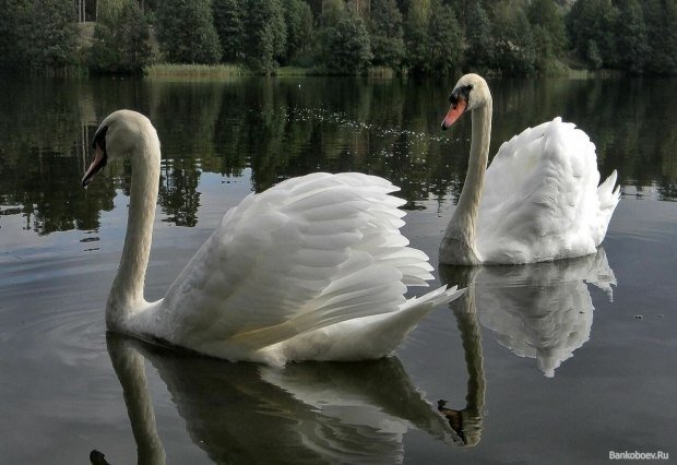 Как с картины вдоль берега лебеди...Пара...