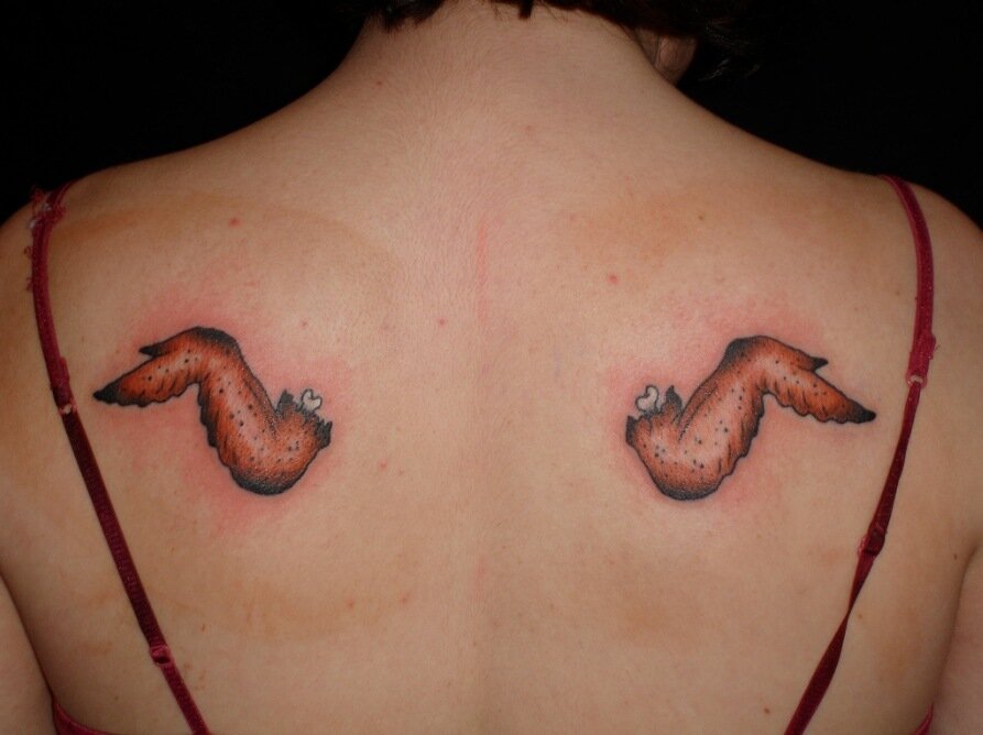 Видно, что тема понравилась, на самом деле это реально забавно) Нашла еще несколько "интересных тату". Мммм, девушка видать очень любит куриные крылышки или кличка у нее курочка, такое себе на самом деле. Кто это? Что это? Из такой же серии, что это за чудик.. Ну, а это видимо, чтобы не забыть, какая часть как называется, видимо чел мясник) Тут все понятно я-робот На последок))))) Ладно человек любит гамбургеры) Но гамбургер подмышкой.......ладно, фиг с ним, а как насчет волосатого гамбургера??)) Это просто нечто) Как всегда повторюсь, каждому свое) Продолжение следует))