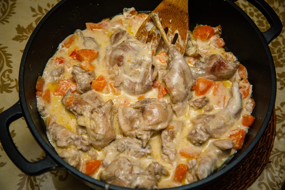 Братец-кролик — животное вкусное. Как говорят, это не только ценный (нет) мех, но еще и масса полезного, диетического мяса. Проблема в том, как кролика выбрать, чтобы вам вместо кролика не подсунули кота Ваську (но об этом поговорим в следующий раз). Сегодня — о новых и, как мне заявили, парадоксальных вкусовых сочетаниях. Предлагаю приготовить братца кролика в сметано-медовом соусе. Мед в нем очень логичен. Судите сами: кролика, по большей части готовят в сливках, сметане или пиве. В первых двух случаях часто добавляют горчицу, а вот к пиву используют чернослив, ну или смесь трав. А мед — это продукт, который дает идеальные сочетания с «молочкой». И почему бы не попробовать его комбинировать с прекрасным диетическим мясом? Тем более, меда нам понадобится совсем немного. Всего-то столовая ложка. А еще возьмем: • Кролик — 1 шт • Луковица — 1 шт • Чеснок 3 з • Морковь 1 шт • Перец красный или зеленый — 1 шт • Сметана 15 или 20 процентная, грамм 150 • Мед — 1ст л • Соль и приправ