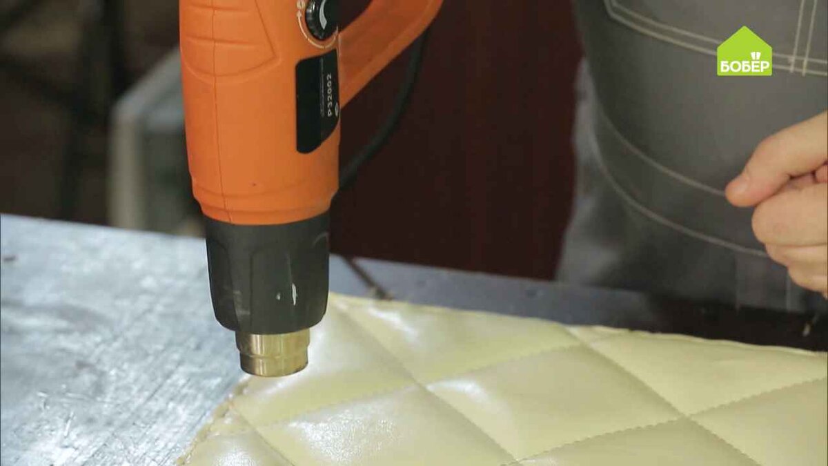 Нередко во время эксплуатации мебели из натуральной кожи или кожзаменителя на изделии появляются заломы, которые выглядят не совсем эстетично. Наш мастер расскажет, что нужно делать. Подобные заломы и вмятины довольно легко исправить, и поможет в этом строительный фен. Данный инструмент быстро набирает нужную температуру — 500 °С. Помимо этого, можно воспользоваться и обычным бытовым феном, однако нагревать изделие придётся дольше. Близко подносить сопло к материалу не нужно, поскольку из фена выходит горячий воздух, и можно повредить изделие. Рекомендуется держать фен на расстоянии 10 см, и как только складки разгладятся, переместить прибор в другое место. Включите фен и осторожно прогревайте складки до их исчезновения. Также можно воспользоваться методом покачивания фена вперёд-назад и таким образом аккуратно прогреть сразу всю поверхность. Экспериментируйте! Больше интересного и полезного ищите на bober.ru