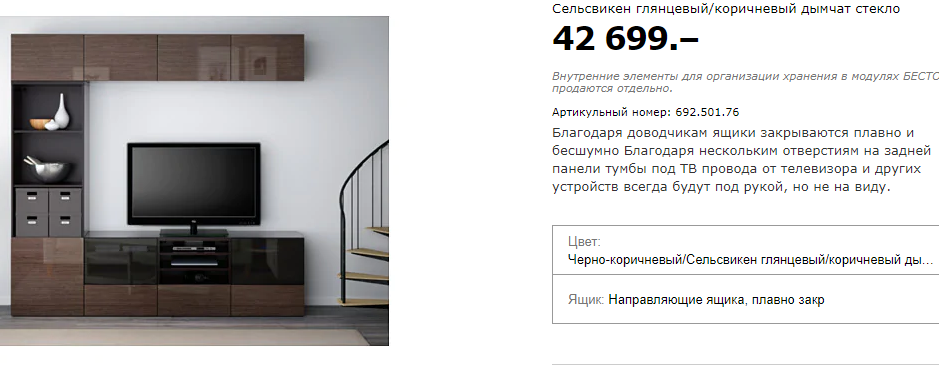 Давно не ходила по мебельным магазинам, не интересовалась ценами. Последние крупные покупки были в Икее, там цены вполне демократичные, что-то дешевле, что-то дороже, в зависимости от используемых материалов. Сейчас мы планируем менять мебель в гостиной. Я, конечно, присмотрела вариант в любимой Икее, за 35-45 тысяч можно купить что-то такого плана, выбрать цвет и наполнение по вкусу. Но решила пройти и по нашим магазинам, может найду что-то похожее местных производителей - фабрики любят "подглядывать" дизайн у других. Надо сказать, что городок у нас маленький и находится в одном из самых бедных регионов России. Средняя зарплата - 15 тысяч, если 30-40 тыс - это уже, считай, повезло. Поэтому и ассортимент в магазинах соответствующий, везут, что подешевле и, в основном, на заказ. Почти все просмотренные мной "стенки" такого плана, цена около 15-17 тысяч. Мне и внешне не нравится, да и качество при ближайшем рассмотрении не очень. Можно найти даже для любителей стиля "дорого-богато", се