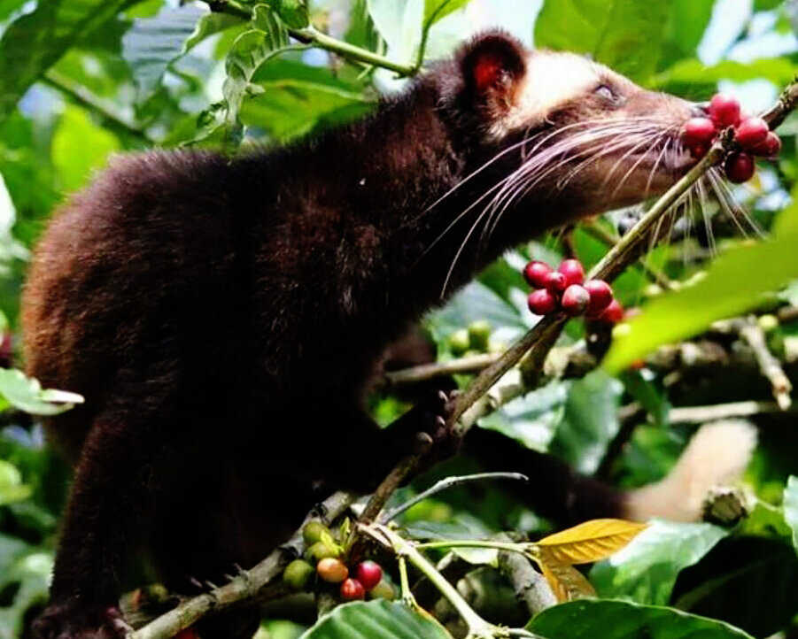 Называют его "Копи лювак" так как его сборщиком является зверек лювак,он же из семейства мустангов и второе его название пальмовая циветта. Живет он преимущественно в Индонезии на острове Суматра,где и начали производить этот кофе,и сейчас является крупнейшим в мире региональным производителем копи лювак . Очень интересно как это надо было додуматься в экскрементах животных найти те самый не переварившиеся кофейные зерна,очистить,обжарить и приготовить - это какую фантазию и наблюдательность то надо иметь?! Но мы отвлеклись. Пальмовая циветта живет в лесах,питается насекомыми,фруктами и ягодами,одними из любимых ягод это кофейные ягоды. Зверек выбирает самые лучшие спелые плоды, которые он съедает и в желудке и кишечнике за