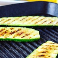 СПОСОБ ПРИГОТОВЛЕНИЯ Кабачки для этого блюда лучше всего выбрать небольшие и не слишком зрелые, чтобы в них было поменьше семечек. Для начала их следует хорошо промыть под проточной водой и обтереть бумажными полотенцами. Саму шкурку срезать не нужно. Далее необходимо срезать края с обеих сторон, а сами кабачки нарезать ломтиками вдоль - не слишком тонкими (чтобы не сгорели) и не слишком толстыми (чтобы успели пропечься). Толщина одного кусочка должна быть примерно от 0,5 до 1 см.