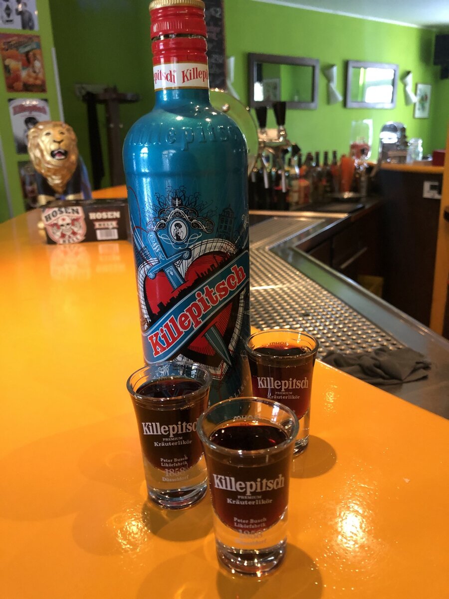 Сегодня же я хочу познакомить вас с одним из местных ликеров, который производят в столице нашей земли в Düsseldorf’е. Называется он «Killepitsch», если дословно то «убийственное пойло». Хотя таким оно не является, даже при 42 градусах своей крепости. Рецепт производства, по данным на сегодняшнее число, до сих пор находится в тайне. Но точно известно, что порядка 98 трав, специй, фру