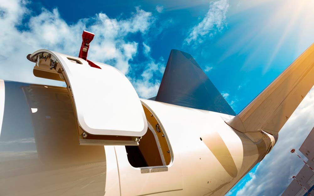 Когда самолёт летит на большой высоте, создаётся разность давлений. В самолете оно выше, чем снаружи. И, чтобы открыть дверь, нужно приложить гигантскую силу, якобы поднять несколько десятков тон.