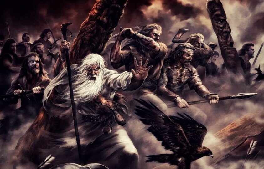 Неравный бой… Ломая стрелы И вырывая из груди, Старик с мечом в рубахе белой Идёт упрямо впереди. За ним в броне сыны и внуки И вся его родная рать. А дед шагает для науки – Про то, как надо помирать. Никто его прикрыть не в праве, Не обойти его в бою. Он завещал погибнуть в лаве: «…Пока рублю, пока стою…» Никто его спасать не волен. В своём строю, в земле своей Погибель ищет старый воин, Чтоб - на глазах у сыновей… И лишь когда он рухнет с честью На славном поприще войны, Тогда и хлынут лавой мести Непобедимые сыны... Никто не сдюжит перед нами, Пока мы видим сквозь века В рубахе, красной словно знамя, Завет родного старика. (автор Леонид Корнилов, 25.09.16 г.) Древний скифский способ построения боевых порядков Славянского войска, был уникален по своему психологическому и патриотическому замыслу. В первых рядах войска, перед началом решающей, смертельной битвы, как правило стояли ста