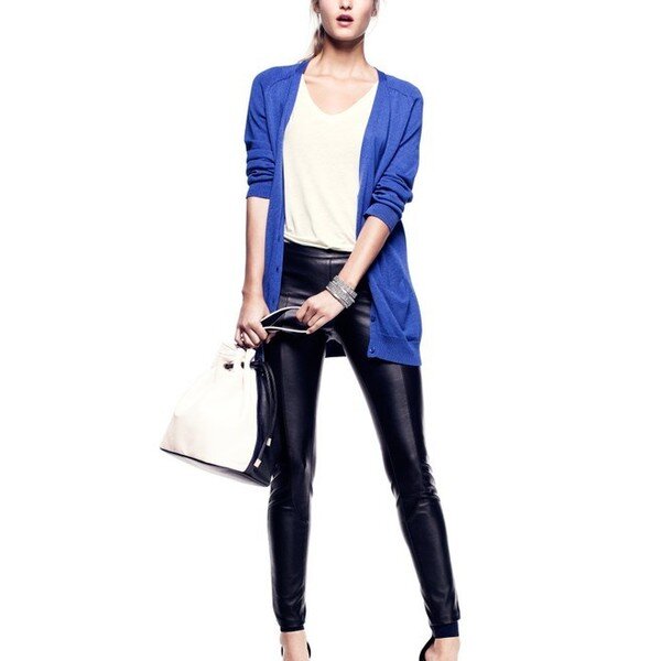 Этот дерзкий предмет гардероба можно носить практически с любыми вещами. Нужно лишь знать как. Не каждая девушка осмелится надеть кожаные лосины, и не зря: этот предмет гардероба действительно притягивает к себе внимание, а значит подчёркивает все недостатки фигуры (если таковые имеются). Леггинсы «под кожу» подойдут девушкам с ровными и худенькими ножками: их облегающий крой и глянцевая текстура подчеркнут ваши достоинства. Однако обладательницы пышных бёдер тоже могут поэкспериментировать с леггинсами. Чтобы скрыть недостаток фигуры, достаточно выбрать удлинённый верх — кардиган или тунику. Несмотря на опасность кожаных леггинсов, они довольно универсальны и впишутся практически в любой лук. В офис Тем, у кого офисный дресс-код не слишком строг, можно поэкспериментировать с матовыми кожаными леггинсами. В сочетании с удлинённой блузкой светлых оттенков и пиджаком, они не будут смотреться вызывающе и броско, а лишь подчеркнут ваши длинные ноги. Красиво и уместно в офисе будет смотреть