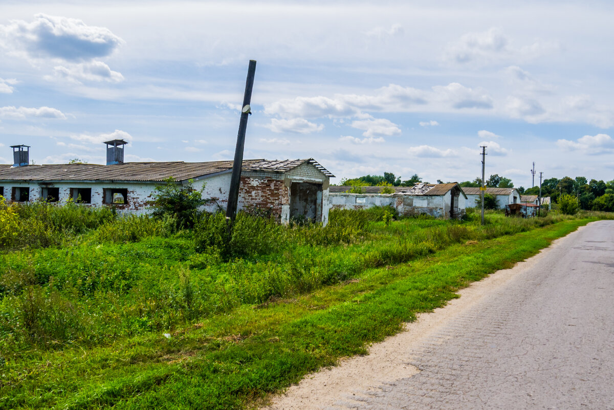 Всем привет. Пару недель назад ездили мы в автопутешествие по нашей области. В одном селе мы увидели целый комплекс заброшенных зданий. Раньше здесь были фермы, где держали коров. Сейчас от них остались лишь только заброшенные здания, которые уже начинают рушиться. Мы, конечно же, не смогли проехать мимо этого места, не показав его вам, дорогие друзья. Поэтому, мы остановили автомобиль, и отправились обследовать эту заброшку. Крыша у входа в здание начала уже разрушаться и опасно провисла вниз. Заходя внутрь, мне даже пришлось сильно пригнуться, чтобы нечаянно не задеть эти нависшие доски. Кто знает, обрушится еще. А вот как это здание коровника выглядело внутри. Слева и справа находилось стойло, где стояли животные. Посередине был проход, и бетонные кормушки. Фотоаппарат никак не хотел фокусироваться в большом и темном посещении. Так что, этот снимок стоил мне некоторых усилий. В крыше местами зияли дыры, подобно этой. Доски сверху тоже опасно висели, могли в любой момент обрушиться.