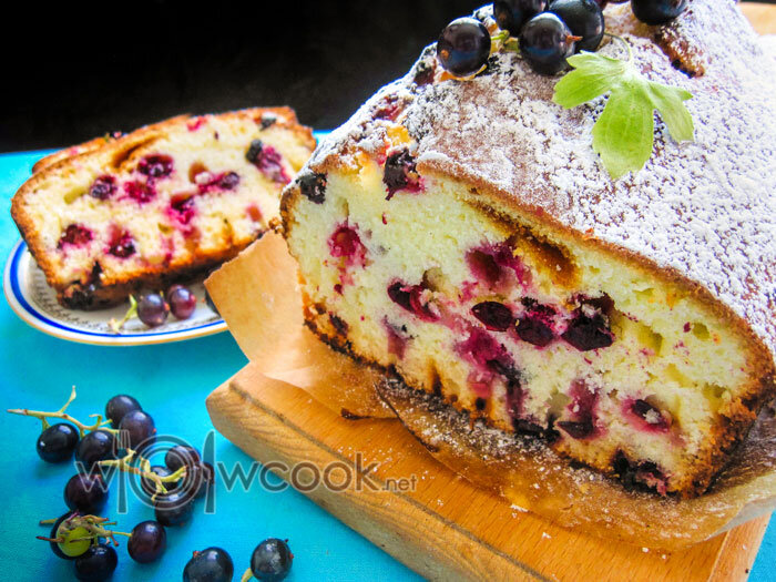 7. Готовую выпечку остужаем на решетке. Перед подачей кекс можно посыпать сахарной пудрой и украсить веточками свежей смородины, замороженными или свежими ягодами и фруктами.