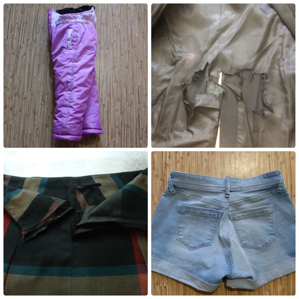 Наверное, в жизни каждой рукодельницы бывают необычные или странные заказы. Вот и у меня было несколько ремонтов одежды, о которых я хочу рассказать. № 1 Как-то раз знакомая девушка привезла мне утеплённый комбинезон своей дочери и попросила вшить в боковые швы светоотражающий кант, чтобы ребёнок стал более заметен. Взялась, но времени потратила уйму. № 2 Недавно мне написала незнакомая девушка с просьбой отремонтировать пиджак на школьника. Я попросила рассказать, в чём заключается ремонт. Вместо этого она просто прислала мне фото изделия. Уж не знаю, что мальчик в этом пиджаке делал (заказчица просила не спрашивать об этом), но дыры на подкладке спинки были очень выразительными. Пришлось заменять часть подкладки спинки. № 3 И ещё несколько дней назад я взялась заменить молнию в маминой юбке. В фабричной юбке, прошу заметить. При ближайшем рассмотрении обнаружилось, что обтачка и подклад значительно уже самой юбки, и поэтому вшить молнию по-человечески не представляется возможным. При
